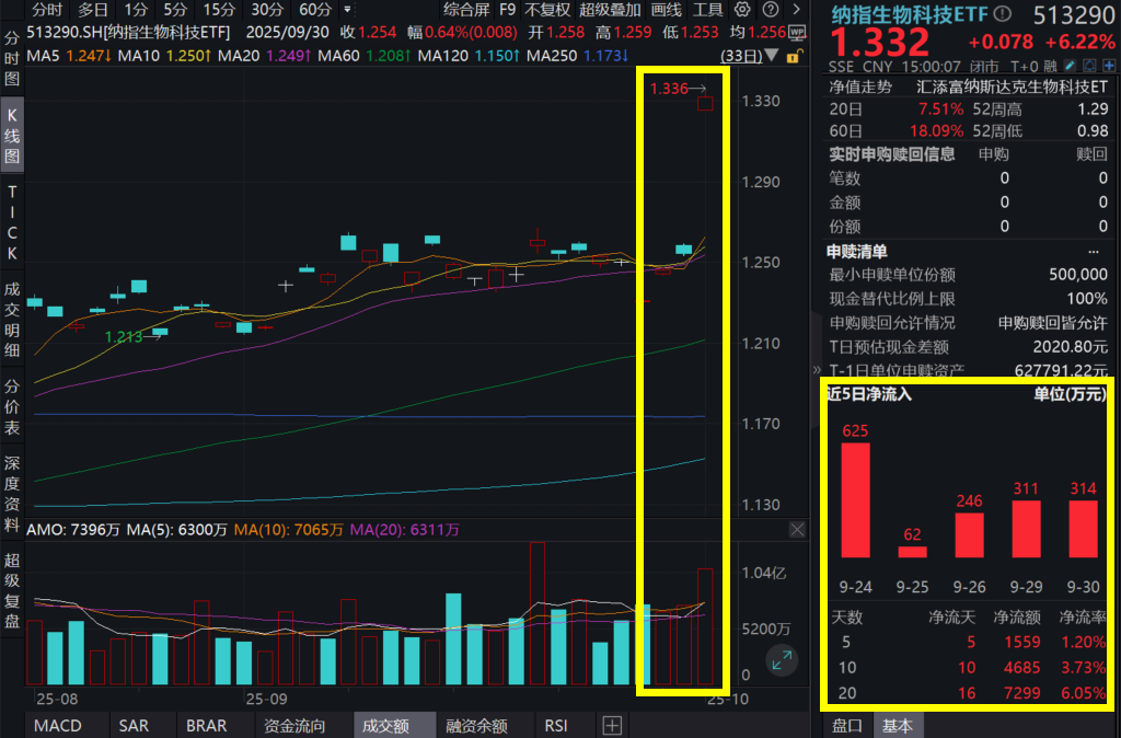 2025-10-10百家乐,百家乐官方网站,百家乐APP下载,百家乐游戏平台隔夜(10月8日)美股收盘,美股三大指数涨跌不一,纳指涨1.12%,标普500指数涨0.58%,两者均创收盘新高,道指收平。纳斯达克生物科技指数收涨0.89%,盘中点位创内年新高。10月9日,纳指生物科技ETF(513290)劲爆收涨6.22%,资金已连续16天强势净流入。