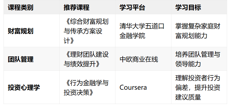 理财经理的职业发展是一场马拉松而非短跑,持续学习与能力提升是保持竞争力的唯一途径。通过系统化的培训课程与专业证书的结合,配合日常工作实践,您将逐步建立起个人专业护城河,在财富管理领域实现持续成长与价值提升!返回搜狐,查看更多