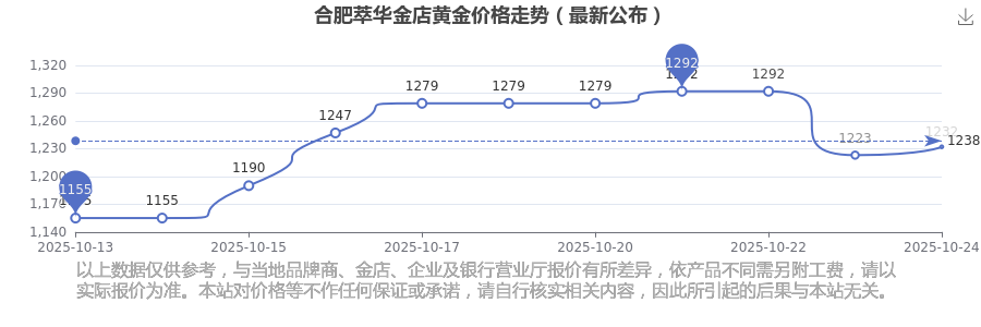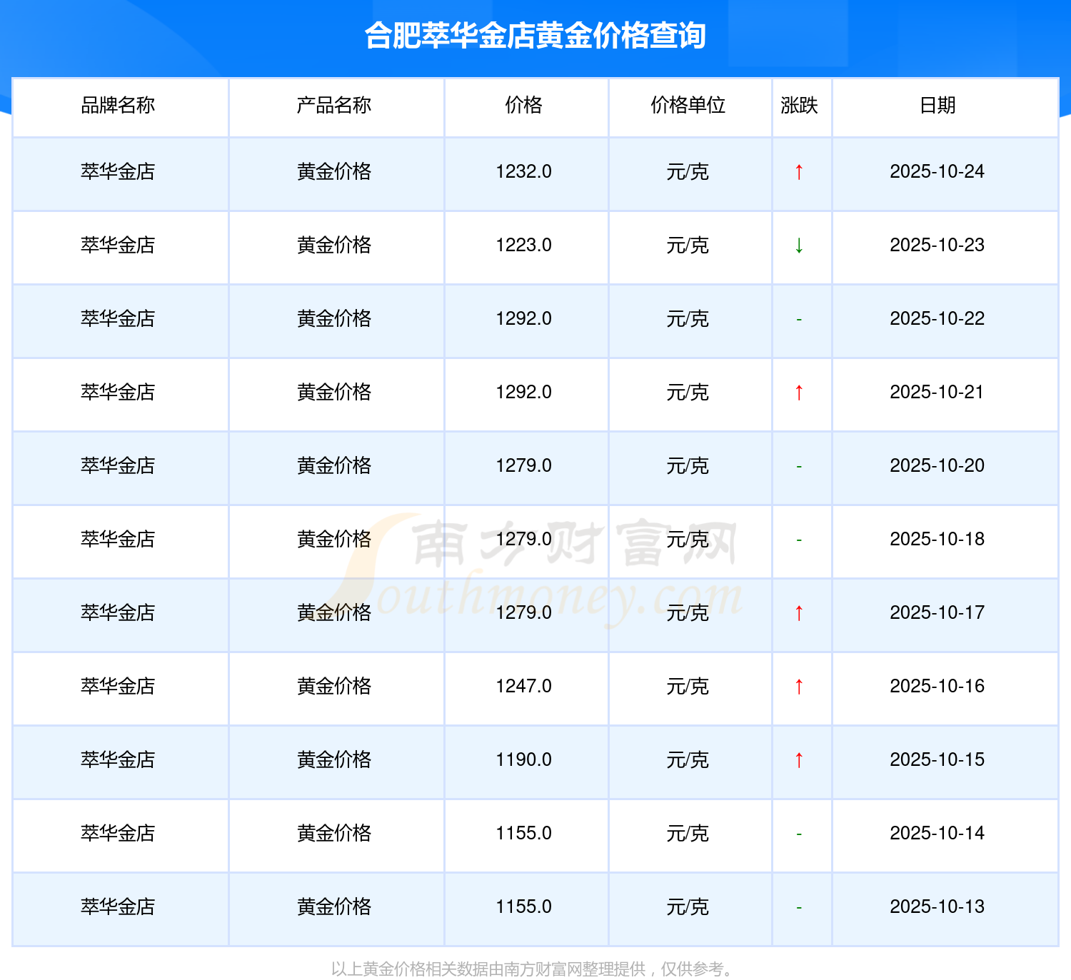 合肥萃华金店的黄金价格在今日(2025年10月25日),每克售价为1232.0元/克。